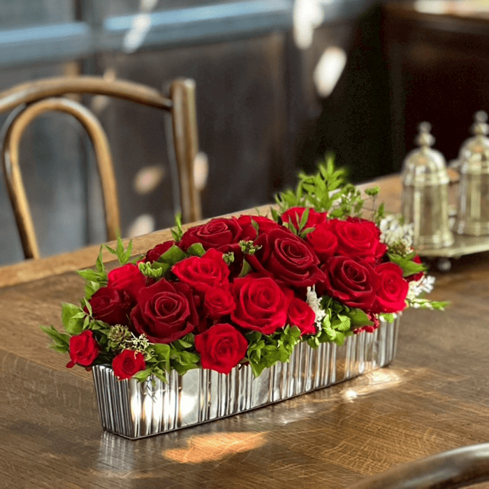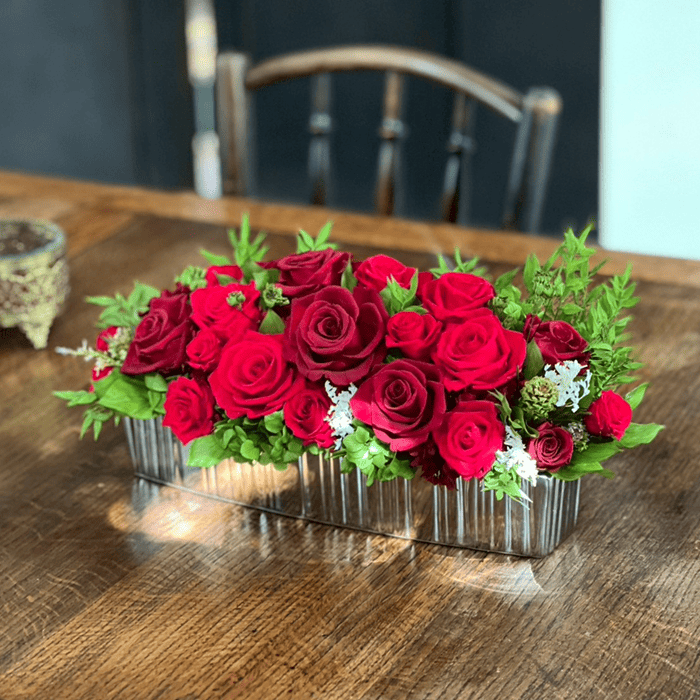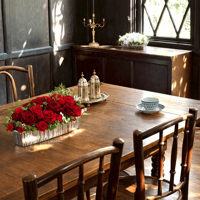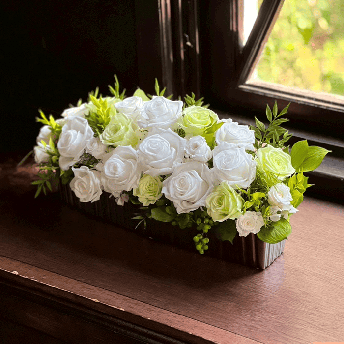 ローズを贅沢にあしらった、洗練されたフラワーアレンジメント「リュミエール」。