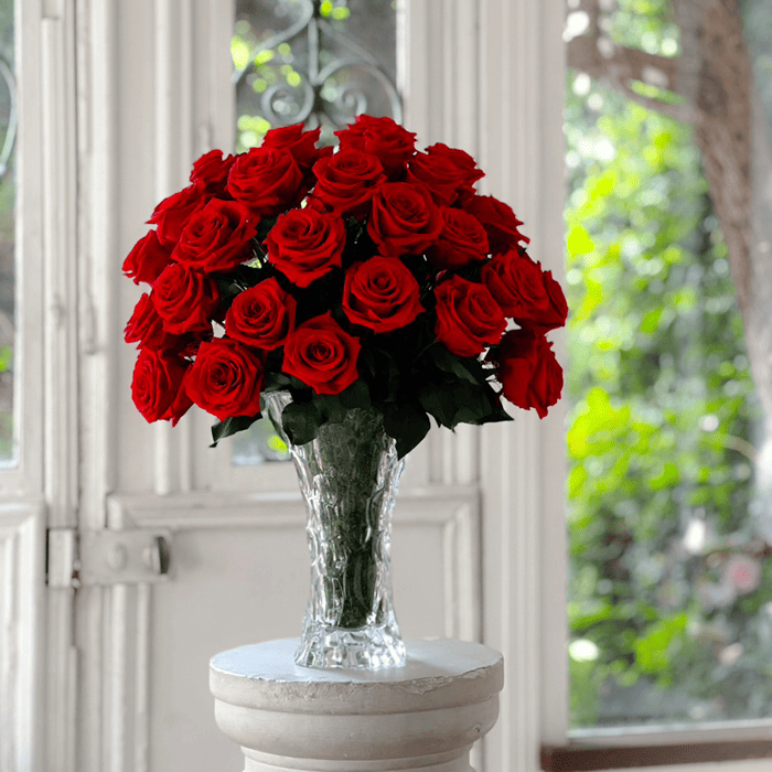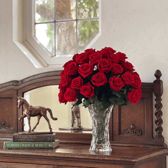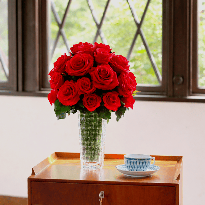 真っ赤なプリザーブドローズを豪華にアレンジしました。