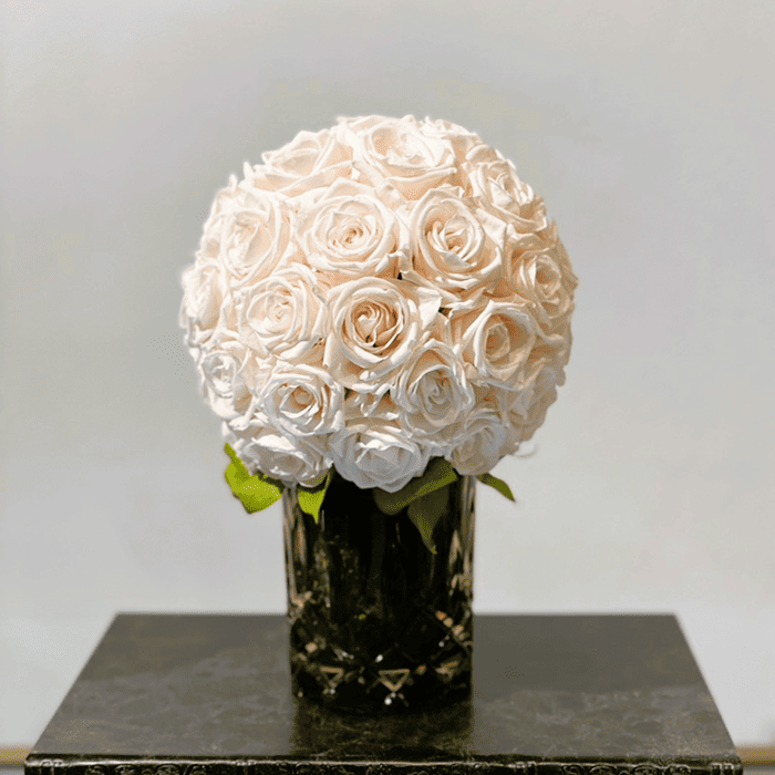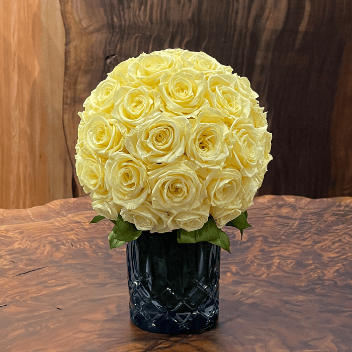 ナハトマンの花器に真っ赤なプリザーブドフラワーをアレンジしました。