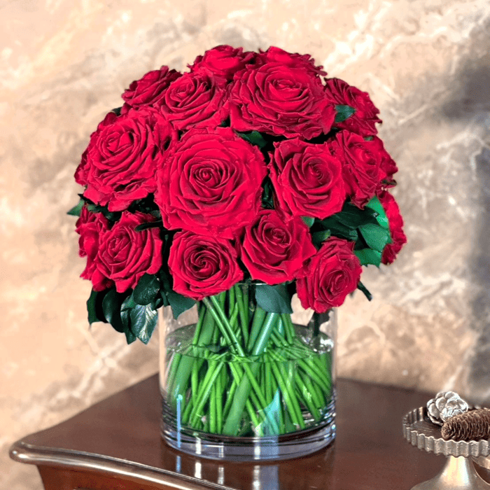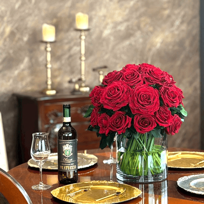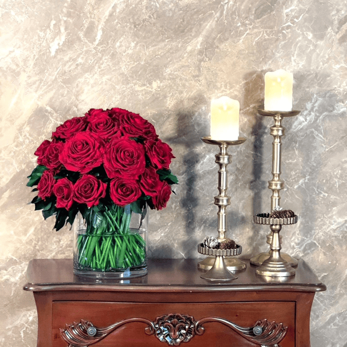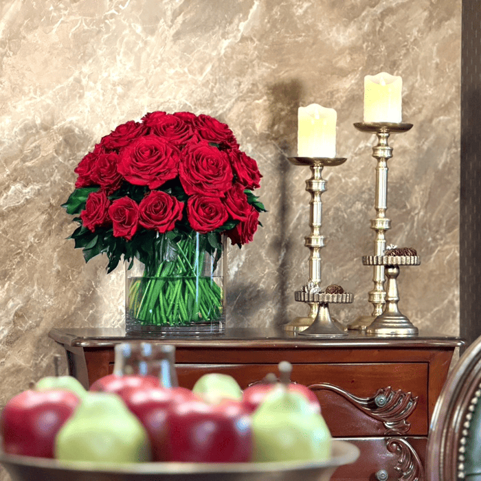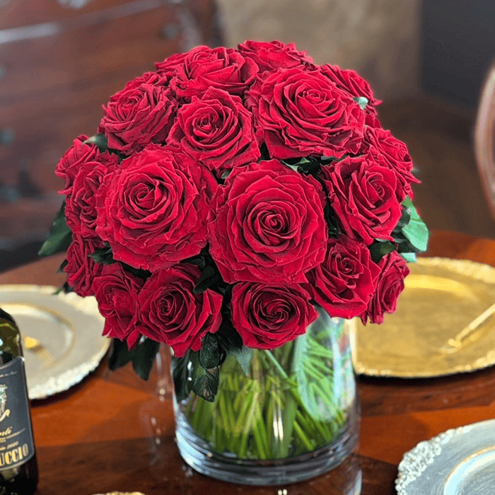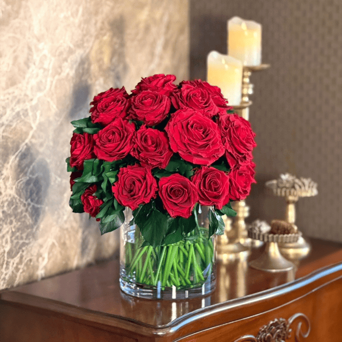 使用しているローズは、レッドのプレミアムサイズより一回り小ぶりなものを採用しております。