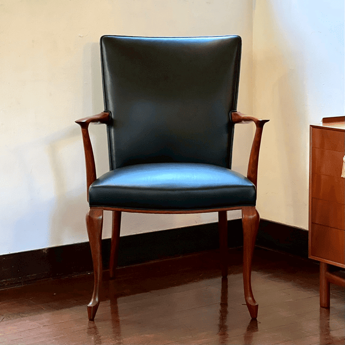 上質な本革と、丁寧に仕上げられた木部の曲線が美しく調和し、落ち着きの中に確かな存在感を演出。